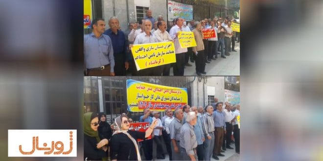 بازنشستگان تامین اجتماعی کرمانشاه روز یکشنبه ۲۹ مرداد همچون هفته های قبل در اعتراض به وضعیت غیرقابل تحمل معیشتی و زیر پا گذاشته شدن حقوق خود مقابل اداره کل این سازمان دست به تجمع زدند و شعار دادند: “دولت ورشکسته، دشمن بازنشسته.”