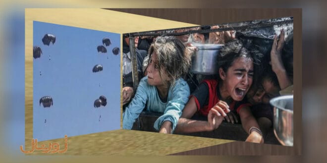 مقامات اسرائیل ادعا کردهاند که پرتاب مواد غذایی از طریق هوا را آغاز کردهاند تا کسی نگوید که دارند از گرسنگی به عنوان سلاح جنگی علیه غیرنظامیان فلسطینی استفاده میکنند. تعدادی به دلیل گرسنگی جانشان را از دست دادهاند و آنها که هنوز زندهاند نزدیک به دو سال است دارند گرسنگی میکشند و نوزادان زیادی از شیر مادر بدلیل گرسنگی مادر محروم ماندهاند. حتی جنایت کلمهای نارسا است. فاجعهای در این سطح و ۶۱ تن کمک! صدقه پنج دولت. البته باید انصاف! را هم رعایت کرد گاهی دولت اسرائیل اجازه میدهد که از طریق گذرگاههای مرزی نیز کمکهایی که مدتها پشت دروازهها میمانند وارد غزه شوند.