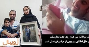 پيام ويدئويى ميثم پيرفلك، پدر زنده ياد كيان پرفلك است، كه گفت: ". . . من هيچگونه شكايتى از مجاهد كوركور و بچه هاى ايزه نكرده و نخواهم كرد